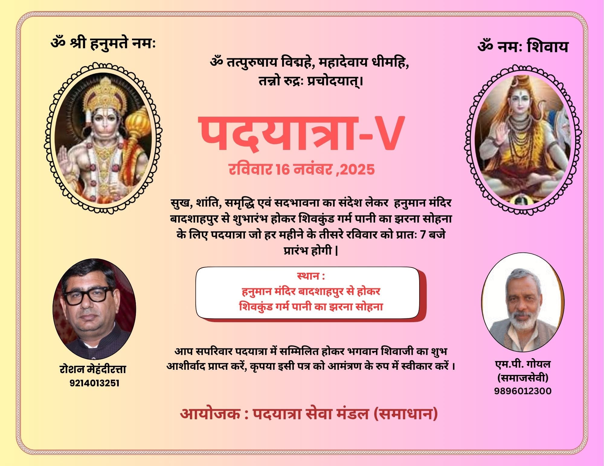 Maa Laxmi Padyatra Lal Bahadur Shastri Chowk Hissar to Shaktipeeth Agroha, Hissar, Haryana, IndiaOctober 5, 2025 06:00am Hisar (Hisar) 5 अक्टूबर 2025 प्रातः 6:00 बजे रेलवे स्टेशन हिसार पर हिमालय परिवार हरियाणा प्रांत की टीम ने सिंधु दर्शन यात्रा को लेकर वर्ष 2026 […]